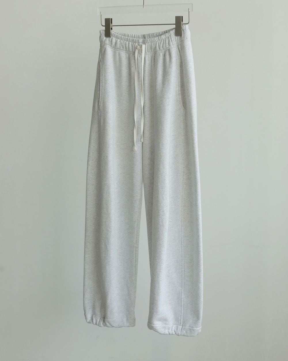 裾がドロストリング仕様のスウェットパンツ。紐が擦らないようにループで留まる仕様です。 太めのシルエットが何にでも合わせやすく、着回せる定番の1本。人気のグレーとネイビーに加え、新色のクリームが登場。コーディネートの差し色としても映えるカラーで、定番カラーをお持ちの方にもおすすめしたい一色。女性らしいアイテムや綺麗目トップスの外しとしてや、ラフなオーバーシャツ、ジャケットなどとも相性良く、着回し力ある1本です。ロングコートを合わせて、同素材のOver Sweat Parkaとセットアップで着るのもおすすめです。