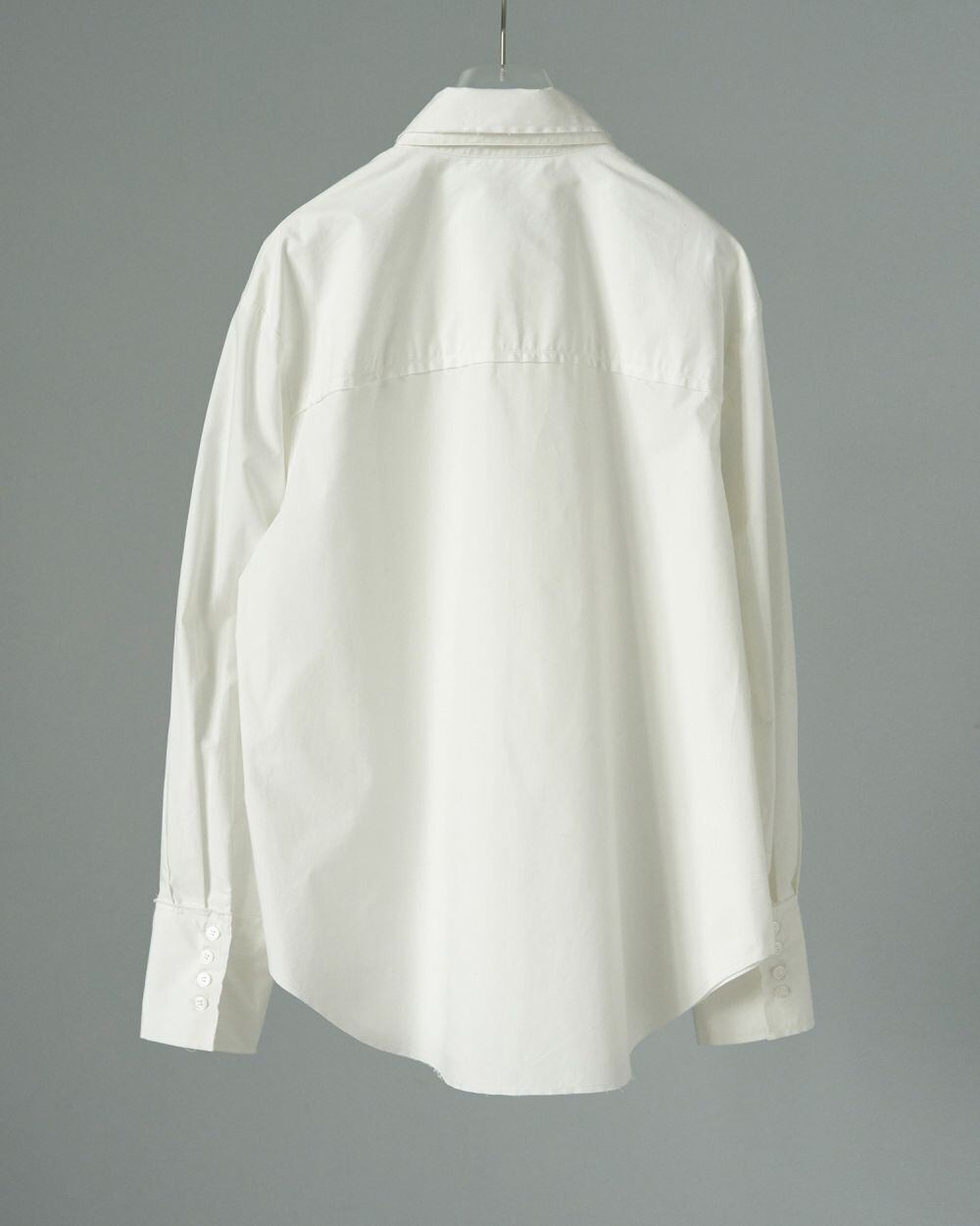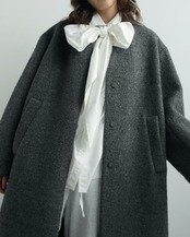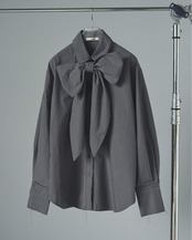 ボリュームたっぷりのリボンタイがポイントのオーバーシャツ。少しハリのある素材で、しっかりとリボンのフォルムが出るよう仕上げました。リボンは取り外しても着用可能なので、シンプルなシャツとしても着回していただけます。端は裁ち切りで仕上げ、太めのカフスに四つボタンがアクセントになり、リボンを外してもスタイリング映えする一枚です。レイヤードするだけでコーディネートが華やかになる、ホワイトとチェック柄の2色展開です。