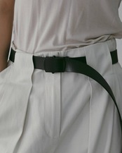 マットなブラックバックルが印象的なレザーベルト。牛革を使用し、使い込むほどに柔らかくなり、風合いの変化を楽しめる一本です。トップスをインしたスタイルやショート丈トップスと合わせた際には、フロントに映えるバックルとさりげなく垂れるベルトエンドが、コーディネートのアクセントに。シンプルながら、装いを引き締めてくれる存在感のあるアイテムです。