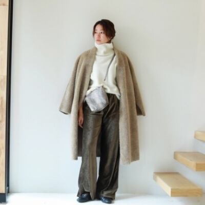 裾にかけてすぼまるコクーンシルエットなので、着ぶくれせずすっきりと羽織れるのも魅力。