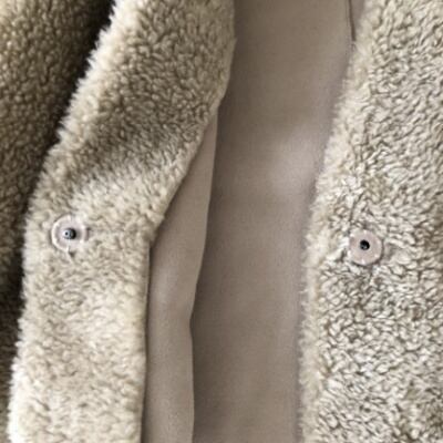 リアルファーのようなしっかりと表情のあるボアがポイントのロングコート。