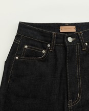 ハイウエストで細身デザインが脚長効果抜群のデニム。腰回りがスッキリとしているので、トップスをインした着方がよりスタイルを良く見せてくれるのでおすすめです。濃紺なので足が細く見えるのも嬉しいポイント。MADE IN JAPAN