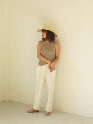 上質なエクアドル産のパナマを使用し、国内生産したパナマハット。高めのクラウンと広めのつばは、そのアンバランスさが魅力。ふちにはパイピングがほどこしており、プラスするだけでこなれた雰囲気に。内側のリボンでサイズを調整できます。